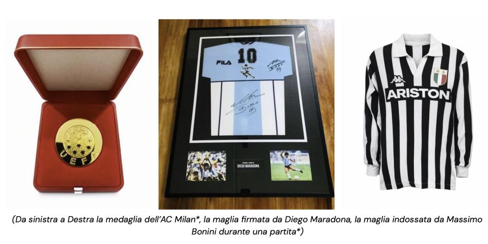 Tra gli oggetti calcistici più costosi acquistati dagli italiani figurano una maglia celebrativa firmata ufficialmente da Diego Maradona (4.300 €), una medaglia della Champions League del Milan del 1989 (4.300 €) e una maglia indossata in partita da Massimo Bonini con la Juventus nel 1985 (1.270 €) - chiari simboli di come momenti storici e giocatori leggendari continuino ad affascinare i collezionisti.